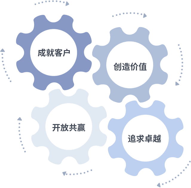成就客户是一切决策的出发点,,,,创造价值是衡量所有工作的标准,,追求卓越是J9国际站做事做人的态度,,,开放共赢是J9国际站的格局也是最终的结果。。。。价值观的齿轮环环相扣,,推动着组织里的每个人不断向前。。